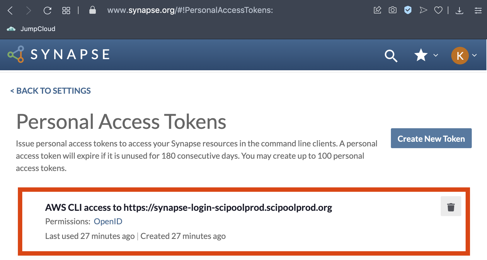 The AWS SSM allows direct access to private instances from your own computer terminal. To setup access with the AWS SSM we need to create a special Synapse personal access token (PAT) that will work with the Sage Service Catalog. This is special PAT that can only be created using this workflow, creating a PAT from the Synapse personal token manager web page will NOT work.