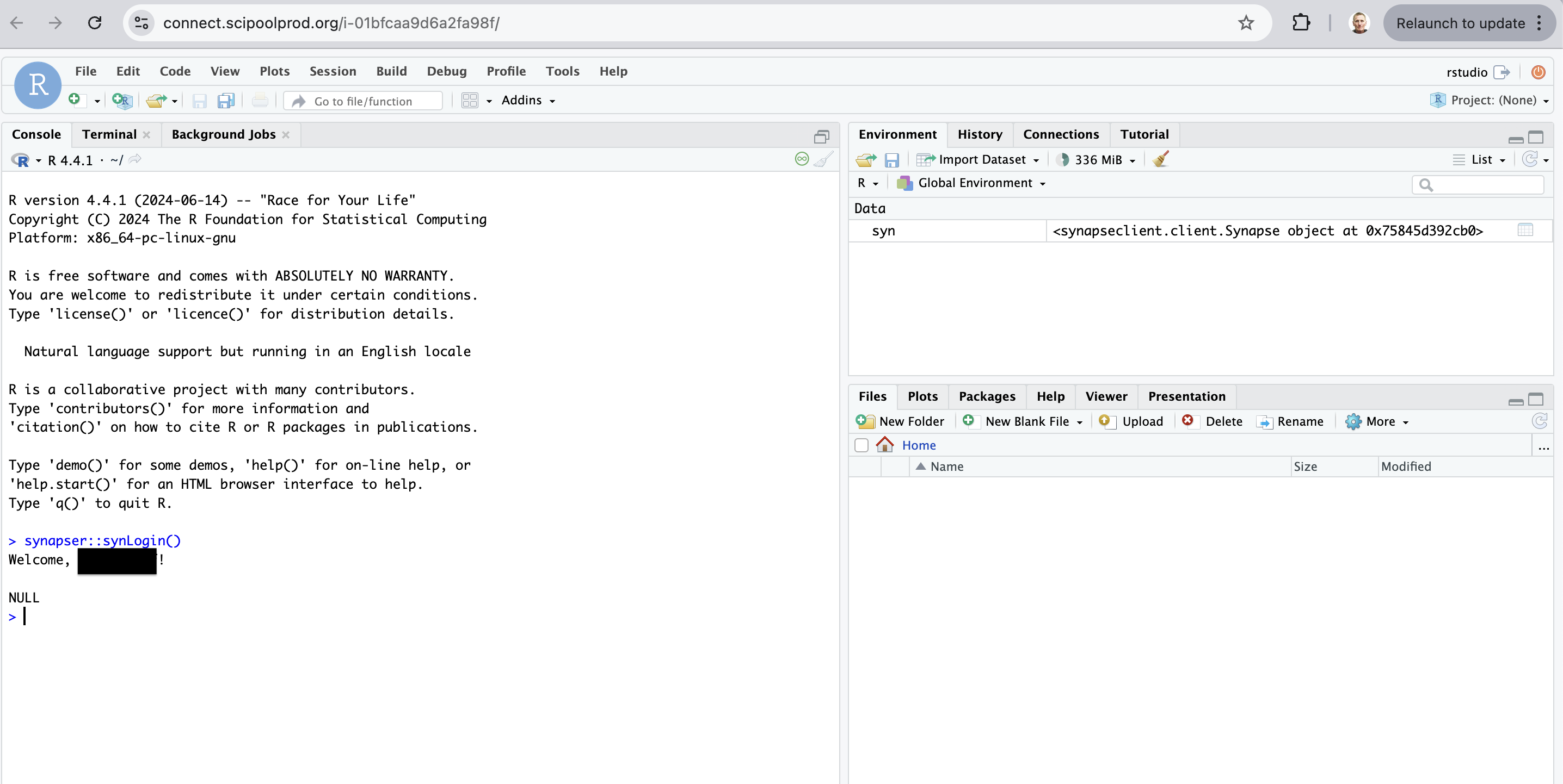 To begin, visit the appropriate entry point URL for your community, listed above, and log in with your Synapse credentials. You will be prompted to allow access to some information from your Synapse profile.